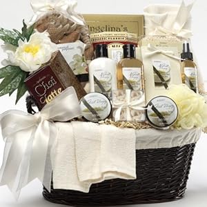 Luxurious spa collection hand-arranged in a cotton-lined keepsake gift basket Features vanilla scented spa products and 100 per
