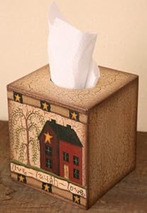 Tissue Box Cover - Primitive House / Home with Weeping Willow Tree and Saying "Live ~ Laugh ~Love" - Perfect for Primi...